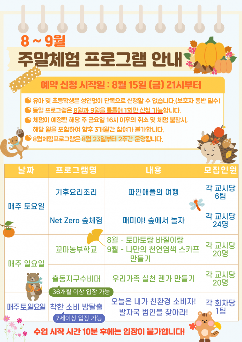 2025년 8~9월 주말 체험 프로그램 안내